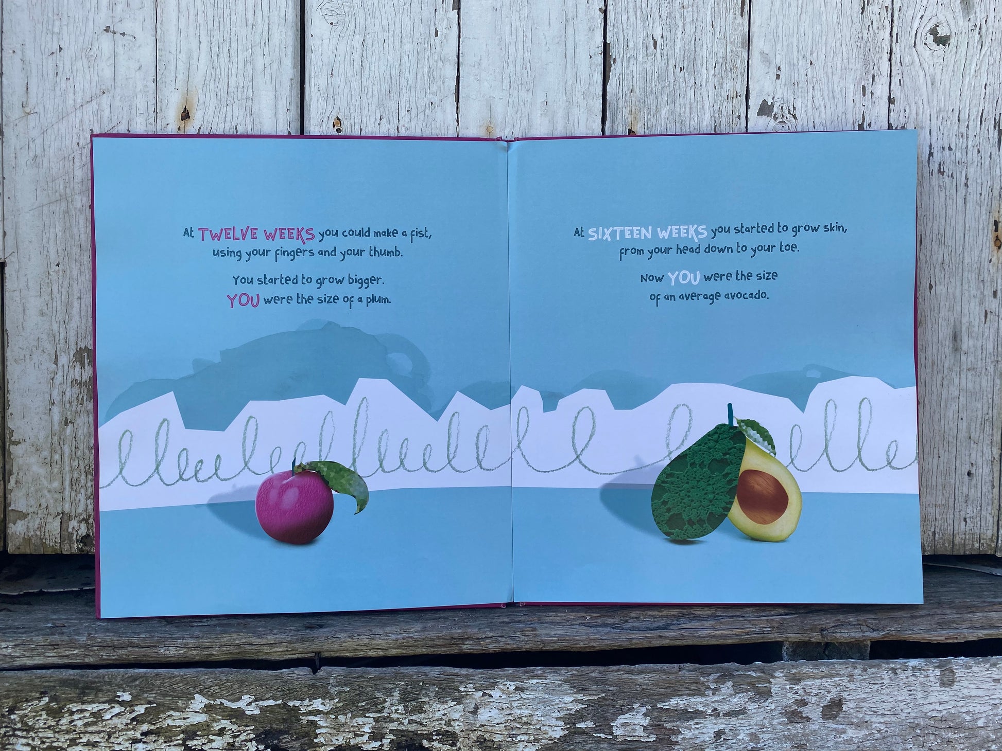 You Were Once The Size of a Plum compares a babies size though different stages of pregnancy to a range of fruits and vegetables. This book provides a great platform for parents and carers to discuss each child's own unique birth journey, and for children to gain a greater understanding of the process.